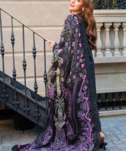 The sleeves are fully embroidered with matching embroidered borders, giving a complete designer finish. The plain lawn back is paired with a subtle back border to maintain balance and elegance.
