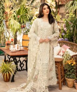 A masterpiece designed for women who appreciate elegance, sophistication, and premium craftsmanship. This luxurious 3-piece unstitched ensemble is crafted from high-quality cotton fabric adorned with fully heavy alternate Chicken Kari embroidery for a rich festive appeal.