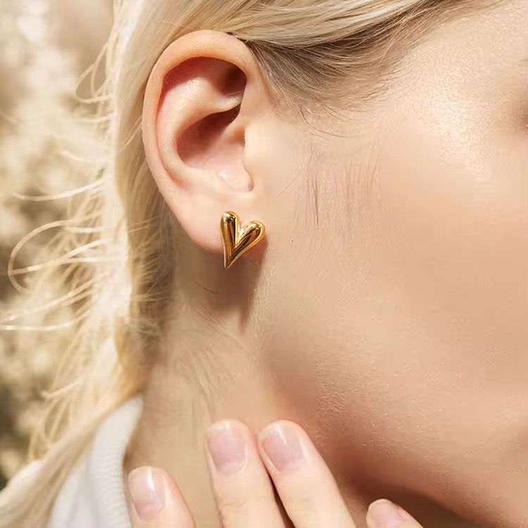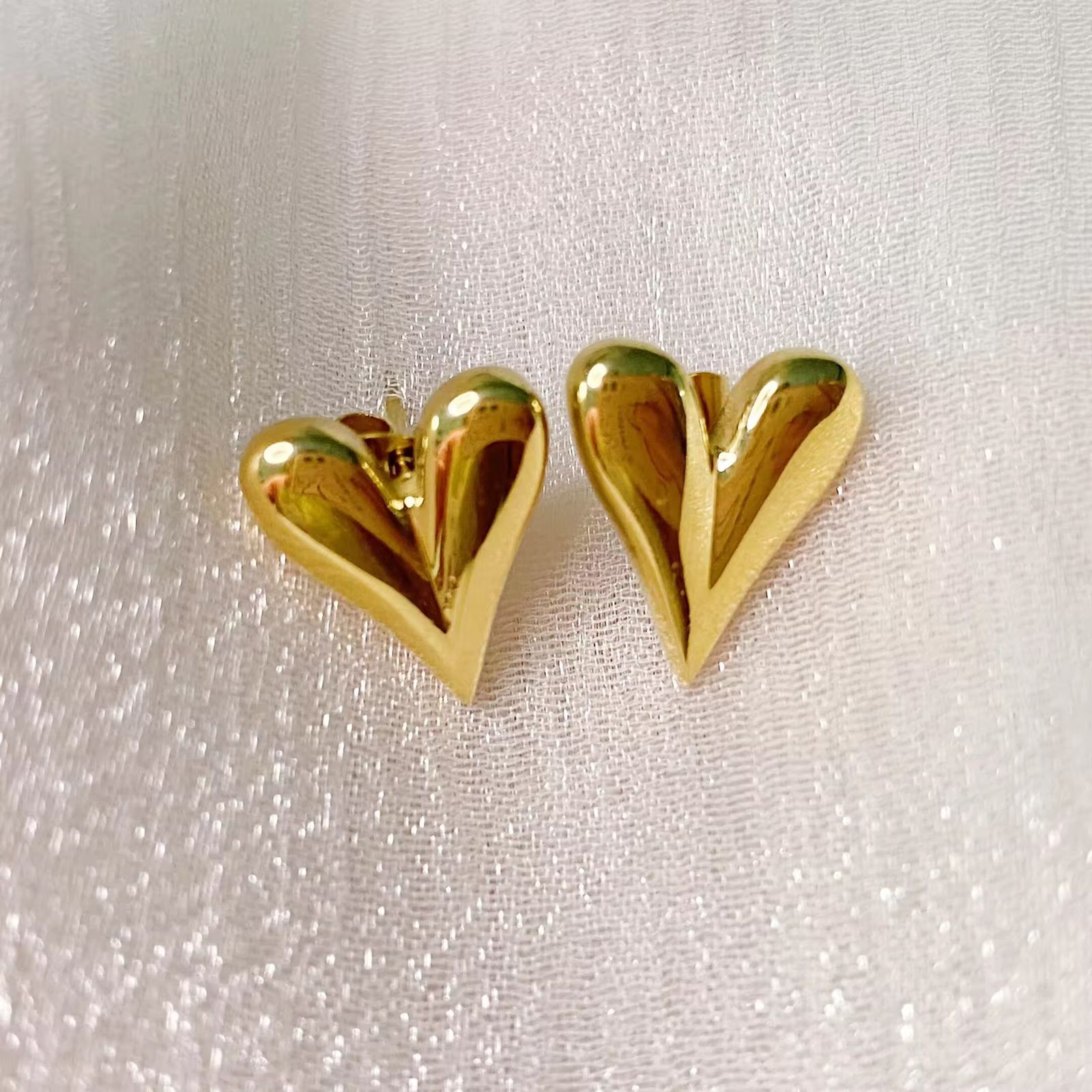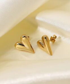 These golden heart shape tarnish free earrings are crafted to express softness, elegance, and timeless charm. Featuring a smooth heart silhouette with a warm golden finish, they offer a refined look that feels gentle and feminine. Lightweight and comfortable, they are perfect for all-day wear without causing heaviness. Made with stainless steel. A timeless accessory for women who appreciate premium quality, graceful design, and effortless style.